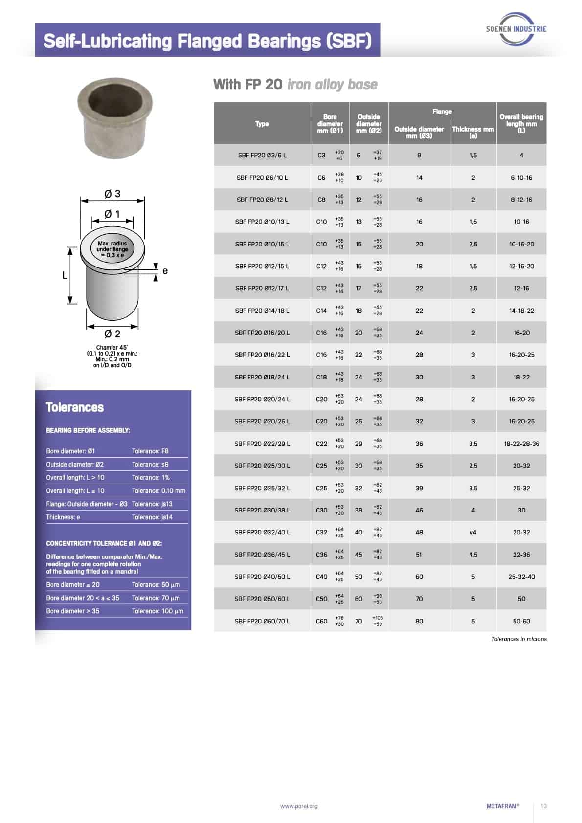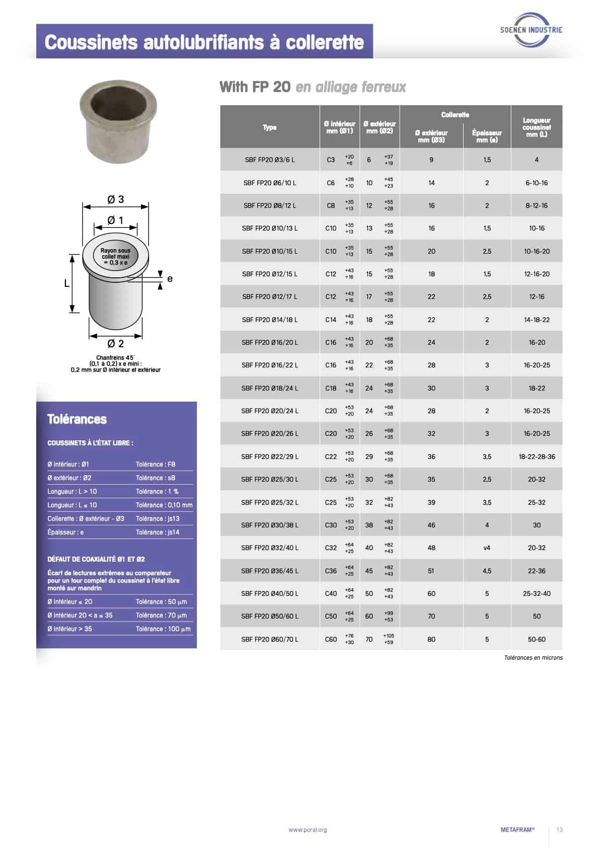 Collerette Intégrée : Les coussinets à collerette FP20 METAFRAM ® sont équipés d'une collerette intégrée pour un montage facile et sécurisé, assurant une installation rapide et sans problème.